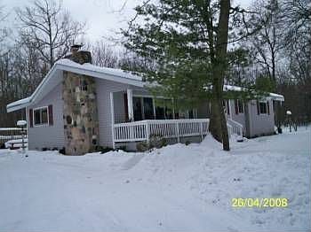 3 bedroom 2 bath home on 4.99 acres. Great location with state land across the street, lakes and trails nearby. Built in full wall china cabinet in dining room. Brick wood burning fireplace Partial basement with family room, laundry and utility room. Outside wood burning furnace with gas forced air backup. Covered front porch and swing. Large back deck. 30 x 40 barn. A must see home with a great private setting.