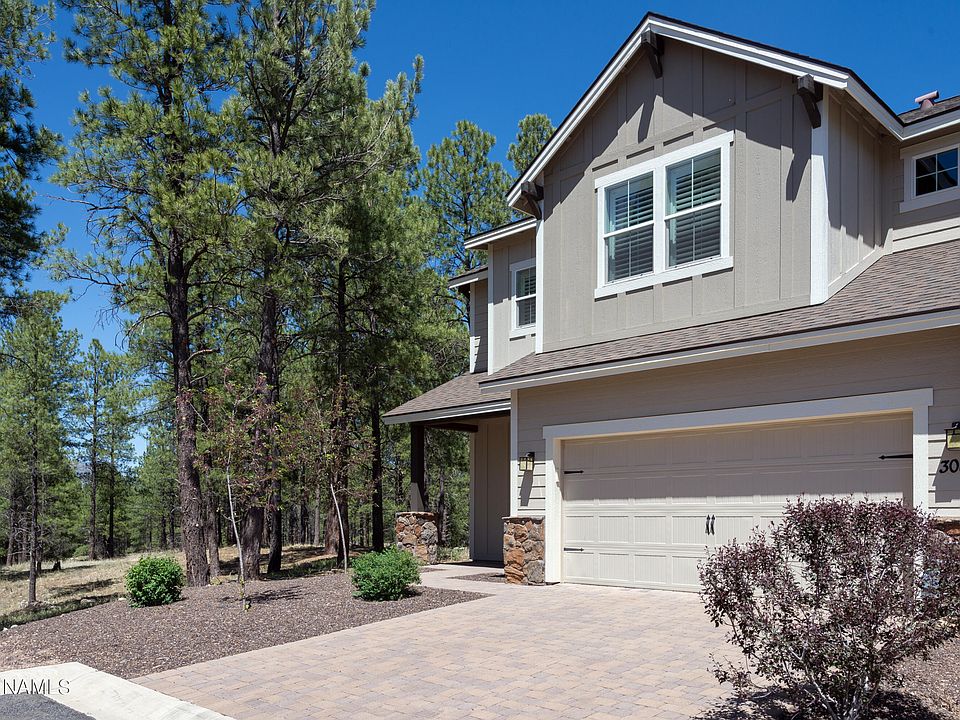 Exceptional Pinnacle Pines townhome in a phenomenal setting! Nearly surrounded by ponderosas, you'll feel like you're in the woods in this end-unit, cul-de-sac location. A second-home since new, this gently used townhome features contemporary, upgraded finishes, including wood floors throughout, stunning quartz countertops in the kitchen and baths, tiled showers, and upgraded stainless steel appliances. The multi-level floor plan gives you wonderful views throughout the home, including from the inviting loft, which makes a terrific home office or lounging area. Home includes A/C with remote Nest thermostat, as well as a recirc pump for nearly instant hot water. Furnishings available separately. Just minutes from Aspen Place shopping, NAU, and miles of trails. This home is a must-see!