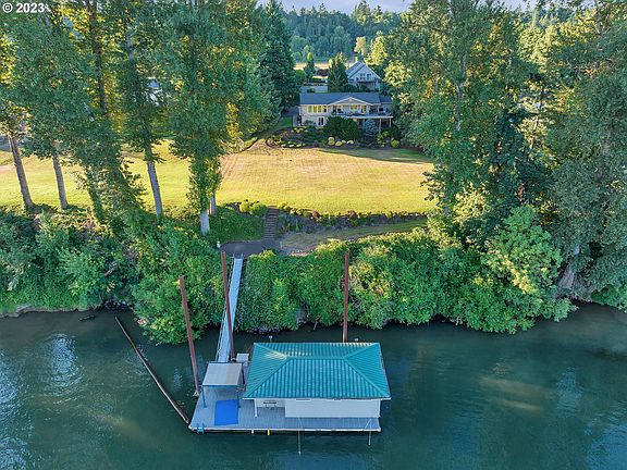Discover tranquility at this remarkable Wilsonville home nestled on 1.6 acres along the picturesque Willamette River. Boasting 2,909 square feet of modern living space, this 1976 remodeled home offers a seamless blend of comfort and style. The property features a detached 8-car garage with a spacious 1,644 square foot guest quarters, providing endless possibilities for visitors or home office. One of the standout features of this home is the rare dock house, allowing you to indulge in waterfront living like never before. Positioned less than 10 minutes away from downtown Wilsonville, convenience meets seclusion in this location. With the Molalla River State Park situated across the river, relish unobstructed views that will stand the test of time.Inside, the home exudes elegance with modern upgrades. Gas appliances, granite counters, and stainless steel appliances grace the kitchen, while hardwood floors create warmth throughout.The property's allure extends to its beautifully landscaped grounds, punctuated by a grand water feature that adds to the sense of serenity. Embrace a lifestyle of comfort, natural beauty, and convenience in this exceptional Wilsonville property. Capture the essence of riverfront living!