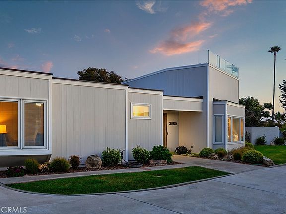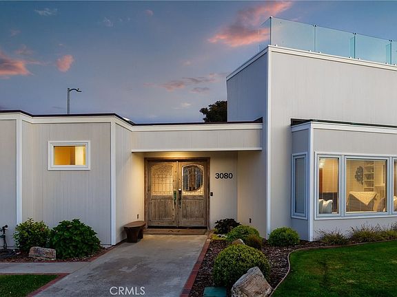 Striking Contemporary Gated Home with Panoramic Ocean Views and Exceptional Craftsmanship. Experience coastal living at its finest in this architecturally distinctive, gated contemporary home perched on a private bluff with unexpected ocean vistas. With a thoughtful two-bedroom, two-bath design and a focus on high-end finishes and easy maintenance, this rare gem blends privacy, style, and functionality in one of the Central Coast’s most sought-after beach towns. Step inside through double entry doors into a dramatic great room featuring soaring ceilings, a cozy fireplace, and expansive Pella windows trimmed in wood that fill the space with natural light. Luxury vinyl plank flooring runs throughout, complementing the open-concept layout. The bright, efficient kitchen is outfitted with quality cabinetry, self-closing drawers, solid surface countertops, and premium appliances—perfect for both daily living and entertaining. Enjoy seamless indoor-outdoor flow with access to a beautifully landscaped yard, an outdoor shower, and adjacent al fresco dining area. Built-in speakers—both interior and exterior—create an ideal environment for entertaining. Atop the home, a large rooftop deck with built-in seating offers sweeping coastal views and is perfect for gatherings or peaceful sunset watching. This home is rich in custom built-ins, including window seats with hidden storage in the living room and both bedrooms. The spacious primary suite features a luxurious skylit bath with a large shower, quality cabinetry, and a California Closets organizer system in the wardrobe. The guest bedroom also enjoys ample storage, a cozy window seat, and access to a nearby full bath—both rooms are flooded with light from thoughtfully placed skylights in every room. Additional amenities include two off-street parking spaces, a single-car garage, and low-maintenance landscaping. With exceptional attention to detail throughout, this residence offers a rare opportunity to own a stylish, turn-key home in a prime coastal location.