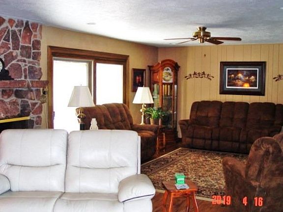 This is a sprawling 2,821 sq. ft. ranch perfect stone home that sets on 7.7 acres, 4 bedrooms and 3 bathrooms on main floor. Large kitchen has lots of cabinets and storage. There is 2 native stone fire places one up and one down. Pella windows with blinds through out the house. Basement has storm room. Beautiful fenced back yard with in ground pool with electric pool cover and a covered porch. 50 x 36 horse barn w/arena has a new roof and 6 inside stalls 3 go to the outside 2 tack rooms, pipe corrals. There is a 50 x 40 shop that has electric door, gas heater and AC. Horse barn shop blding and house all painted in 2017. All this just minutes from town. This is a great property for horses. This is a must see!