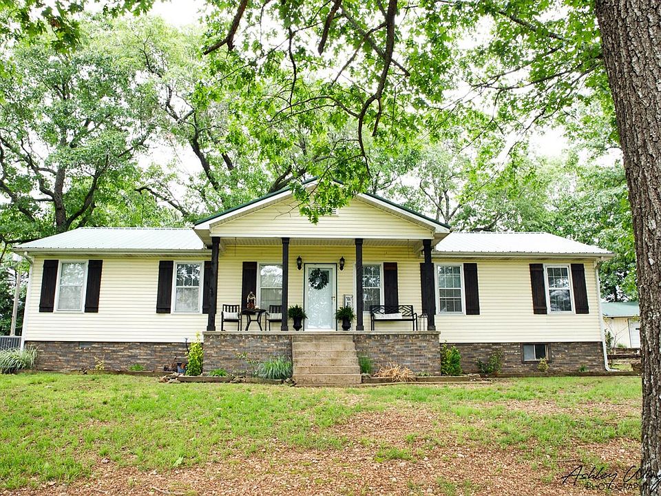 Absolutely stunning views will greet you from the covered front porch. Life Proof style flooring and ceramic tile welcome you inside to a tastefully updated and remodeled home in a terrific location! Minutes from Harrison and in the Valley Springs School District. You will find this home nicely tucked away on 20 acres of fenced and cross fenced pasture with a pond. Home has an HVAC less than 5 years old, wood burning stove, beautiful flooring, and views from practically every window! Don't forget the large, detached workshop and covered RV/Camper storage area with water and electric! Come and see what country living close to town looks like!