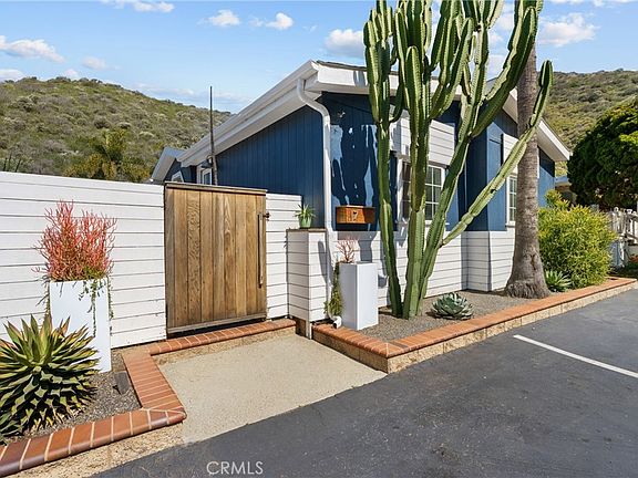 RARE!! Location, location, location! This gorgeous Coastal Modern Manufactured Home has upgrades GALORE. Modern, polished and functional, this home boasts with mid century modern both inside and out! This 3 bedroom, 2 bathroom home is an entertainer's DREAM! The ONE OF A KIND outdoor space is perfect for entertaining, striking the perfect balance between an entertainer’s dream and a private retreat. Low maintenance and plenty of space for seating +more. Large agaves and succulents surround the outside offering a serene, relaxing vibe. The main living space offers a light and bright open concept with contemporary wood flooring through. The spacious kitchen has plenty of seating, quartz countertops, and tons of storage. A separate desk area in the kitchen currently being used as an office area but can be multifunctional. There is laundry area and linen storage inside. The primary bedroom, spacious in size also offers a sliding door for easy access to the yard. Two large bedrooms at other end of the home with an upgraded bathroom in the hall. The community, Laguna Terrace offers a Heated Pool, Spa, Clubhouse and Gym. Close to shops, restaurants, beaches & the Montage Resort & Spa. Monthly land Lease is $3,800 w/ annual increase of 3% or CPI, whichever is greater. NO LAND TAX AND NO HOA. Close to restaurants, 5 star resorts, shopping, entertainment and MORE!!