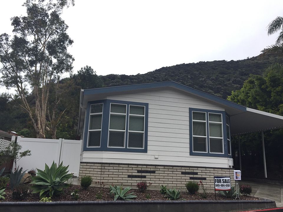 This beautiful 3 bedroom, 2 bathroom beach home is located in a quiet neighborhood just a short walk down to the beach. Featuring:9' high ceilings, a large outdoor covered deck, extra storage shed, and two car covered carport. White & blue beach home with stone accents. Large open kitchen. Master suite with spacious bathroom. Walk to the beach or relax outdoors with beautiful canyon views and ocean breeze! Laguna Terrace is a unique hybrid community where you own your home and lease the land, offering a more affordable way to purchase a new home in prime Laguna Beach! The monthly community fee is $2,595 and includes property taxes and HOA fees. Don't miss this unique opportunity for low entry to Laguna Beach. Call for more information or to schedule a tour.