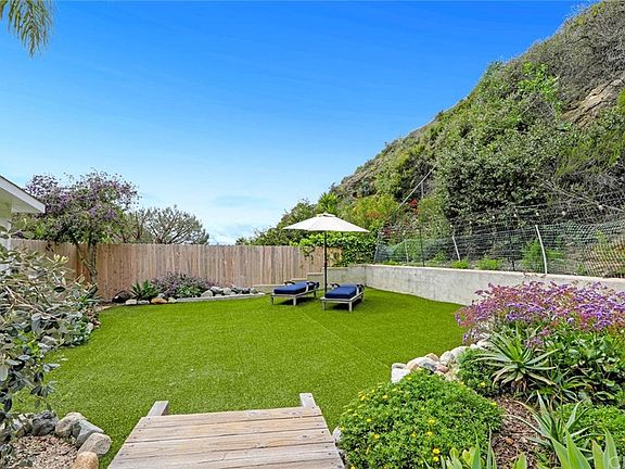Beautifully remodeled single story five bedroom home, secluded among the canyons of Laguna Beach, offers a spacious landscaped backyard with delicious Fig and Pineapple Guava Trees along with stunning mountainous hillside views; ideal for entertaining or just enjoying the peaceful surroundings. This 2,050 sq. ft. exceptional manufactured home on leased land offers an ideal floor plan, comfortable open concept living area with pool table, high ceilings to capture the light with lovely fireplace and light wood laminate flooring. 5 bedrooms/2 baths with master bedroom with en suite bath and large walk in closet. This very rare and well appointed home offers a resort lifestyle across from the Ocean, Best Beaches and World Famous Montage Resort. Stones throw from shopping, restaurants, yoga and more. Upgrades include updated flooring, kitchen, bathrooms. Large back yard with Trex decking, new fencing surrounding entire area and hardscape pavers. Two large storage units and parking for 6 cars. This is one of the largest and most private homes in the Laguna Terrace Community which offers a heated pool, spa, clubhouse and gym. Land Lease is $3,700 monthly and increases annually 3% or CPI whichever greater. NO HOA and NO LAND TAX makes this an exceptional value. You too can live and enjoy the Laguna Beach Lifestyle. A MUST SEE!