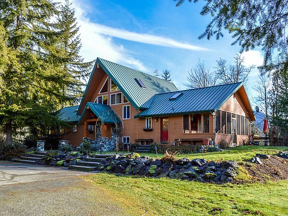 Retreat to river and forest in your spectacular custom lodge on the North Fork of the Stillaguamish River. Glacial peak and river views are included in this majestic Mountain Lodge style home that features reclaimed structural and finish woods with true river rock and old brick interiors. Built in 1996 by the original owner this home has a shop, sauna, jet tub, ample natural lighting and hickory cabinets. Private and peaceful location to enjoy and appreciate it all.