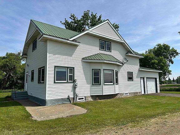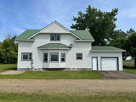 Here is your future home or hobby farm if you are looking for a beautiful, well-maintained property with a grove of mature trees! Almost 22 acres, with about 9 tillable, features the perfect arrangement for anyone! This 4 bedroom home has steel siding and a steel roof. All of the windows are vinyl double-pane. Entering through the single attached garage will lead you into the east foyer to hang up your coat and store your shoes. With a little over 2000 square feet of living space, there is a main floor bedroom with a double closet and heading down the hallway is the large, full bathroom along with the laundry. The welcoming living room has three windows, allowing in plenty of natural light. The eat-in kitchen also has lots of natural light pouring in and an abundance of cupboard space. All appliances remain. Three large bedrooms with roomy closets and a 6 x 10 room, which could be turned into a second bathroom, are located upstairs. The full basement, with a concrete floor and stone foundation, contains the mechanical and ample storage space. A cold storage room with shelving and a dirt floor is in the SW corner. In 2023, a new septic tank was installed and the plumbing has been updated with PEX. All recently installed are a new water heater, water softener, and a reverse osmosis system. A 200' well supplies the water. Electric baseboards are used for heating and there is fiber optic internet available. The yard is nicely set up with several outbuildings which include the following: a 12 x 15 shed, a 40 x 72 quonset with electricity (220v) and a dirt floor, seven grain bins, plus a 26 x 27 workshop/shed and a chicken coop that has a concrete floor. Property is being sold as is and searching for that cash or conventional loan buyer to add their personal touch. Please schedule your viewing to see how this property could work for you!