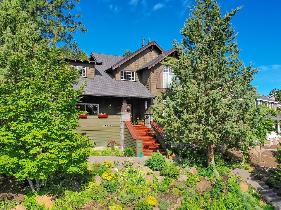 This Awbrey Village 3,161 sqft home delivers Craftsman style interior detail and character, w/ large rooms and open concept. Front steps wrap around a butterfly garden leading up to a full-length front porch w/ mountain views. Living features include a primary bedroom on the main w/ fireplace and newly remodeled en suite, a place to relax from any day. An additional bedroom on the main level provides flexibility for a guest room or home office. The updated kitchen, living and dining area are w/ open concept for easy family living. Upstairs presents two add'l bedrooms, full bath, large laundry, and a generous multi-purpose great room w/ vaulted ceiling. A lush and well-maintained landscape offers outdoor retreats: front porch view of East Bend and the Ochocos, quiet hammock hideaway and a back patio w/ dining space and hot tub held in a fenced backyard. Recent kitchen remodel w/ newer appliances, oversized 2-car garage, and detail to property maintenance delivers excellence. A MUST SEE.