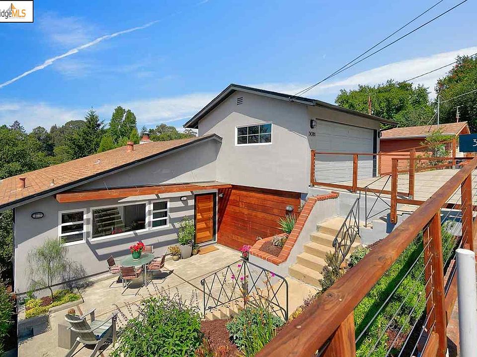 Mid-Century inspired Contemporary in Redwood Heights. Appreciate its practical floor plan, flexible to a variety of living & sleeping arrangements. At 2,384 sqft, 3 bedrooms & 3 full bathrooms...spread out! Live, work, play & relax from the comforts of home. A cast iron railing leads down to a concrete patio, surrounded by mature garden, then to the front door. Continue to a living room w/soaring ceilings & large windows looking out to a treetop canopy. The openness wraps around & is open to a dining space, also a well appointed kitchen. Separated from the main living room, upstairs, are 2 of 3 bedrooms. Both large enough for a variety of bed sizes & have storage galore. Retreat to a whole other living space at the lowest level, currently used as a combined family room and home office space. From the side door here you can escape to a magical garden of trees. Atop the yard is a patio for sitting. Meander down to the end of the lot to explore, or imagine the possibilities.