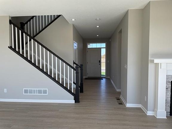 Ready for move-in! Home features PELLA windows, unfinished walk out lower level, UNIQUE 4 bay garage (3 stalls across front and 4th bay tandem) with 8' tall garage doors, main floor 4th bedroom and full bath, kitchen with window & spacious center island with room for 4 stools, great room fireplace, decorative stair rails, & mudroom with walk in closet. Upper level features private primary suite with vaulted ceilling & oversized walk in closet with door to laundry room, deluxe primary bath with separate soaking tub & shower, private water closet, and dual sink vanity, two additional bedrooms and a versatile loft area, full bath with double sinks, and laundry room with cabinets. Association uniquely offers limited restrictions and includes garbage service and common area maintanence. All measurements are approximate.