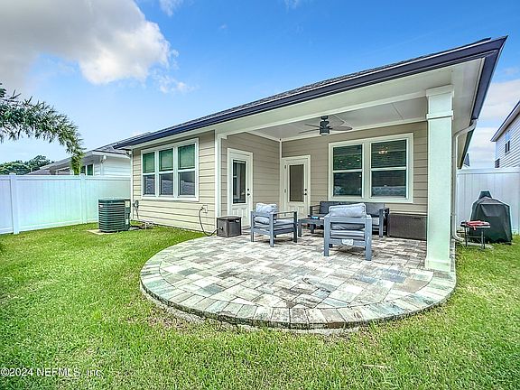 FALL SPECIAL: $5000 TOWARDS BUYERS CLOSING COSTS OR BUY DOWN. Newer home with all the Upgrades. Fully Fenced yard, fans, custom closets, much more. Enjoy open and very efficient floor plan featuring flex room and guest bathroom. Custom built in closets throughout, including the pantry and all bedrooms. Home is equipped with high end appliances, fans, updated light fixtures and water softener. Primary has tray ceilings and a door to the patio for your morning coffee. Relax into Florida living with fruit trees in your private backyard paradise newly fenced in. Patio has beautiful pavers and pristine landscaping. Don't miss out on this meticulously crafted home! *French door in garage will stay and can be used to enclose flex room and create a 4th bedroom or office.