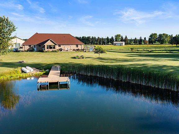 Beautiful, custom brick home built in 2000 sitting on +/-21 peaceful acres with pond. 60x40 finished pole building with 14 foot ceilings. Pole building has an attached 16 x 60 lean-to and tramp shed. Custom chicken house/coup you have to see to appreciate! Finished Pole building features: Insulated and metal siding inside and out Concrete floor Separate eletric with 200 AMP designated meter Water 3 Phase roto phase converter Large loft storage area DYI paint booth could be used for cars, furniture, terrific hobby area Designated propane tank Three Infrared overhead heaters Separate ADT for home and pole building Separate WiFi for home and building House has beautiful Metal roof approximately 5 years old New well pump 2021 Whole house reverse osmosis water system 2020 Hard wired house Generac generator 10KW This property has about anything you would want; open concept living and kitchen with breakfast bar, attached garage, full basement, custom laundry room, spacious sunroom with huge windows for a scenic view overlooking the pond and wooded acreage. The woods has a variety of trees both mature and young. Fishing pier just waiting for you to cast a line. This is one to see - priced at $464,900.