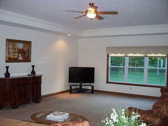 Stunning custom 3 bedroom brick ranch with spacious open floor plan and large rooms. Perfect move-in condition. Custom interior includes 9 ft. ceilings and tray ceilings,hardwood floors,beautiful custom kitchen. Sensational master bath. Geothermal heating/cooling with additional insulation-extremely energy efficient. Absolutely beautiful,quiet country setting,but less than 5 minutes to I-74. Triton Central Schools.