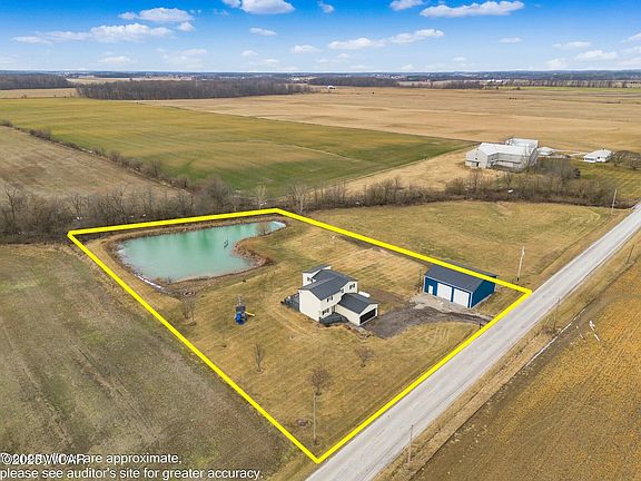 WOW! Immediate possession. 2.2 acre peaceful acres with spacious 3-bedroom, 3-bathroom home. Complete with a brand-new 40x40x14 pole barn (built in 2024) featuring concrete floors and 200 AMP electric service—ideal for storage, hobbies, or your next big project. Inside, enjoy 2,320 sq. ft. of comfortable living space with an open-concept design. The bright and airy main living area flows into a modern kitchen outfitted with white cabinetry and granite countertops—perfect for entertaining or everyday living. Upstairs, the large primary suite offers vaulted ceilings and a beautifully updated private bathroom. Two more bedrooms and a full hall bath provide plenty of space for family or guests. You'll also find a convenient office/den, ideal for remote work or a quiet retreat. Step outside to a rear deck overlooking your own 1-acre stocked pond—a peaceful backdrop for relaxing or hosting. The home also features a metal roof and propane heat, combining durability with energy efficiency. Located just 25 minutes from Marion and Marysville, and only 15 minutes to Richwood, this property offers privacy without sacrificing convenience. Schedule your private showing today—your country retreat awaits!