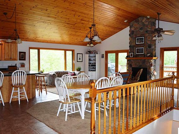 This newer 4 bedroom, 3 bath home is located on just under 40 acres that adjoins State land. This home features an open floor plan, large entry, walk-in closets, private master bedroom and bath with a jetted tub and a deck over looking the landscaped yard and acres of trees and wildlife. Enjoy the privacy this home has to offer with trails throughout the land, a walk-out lower level to a patio and hot tub, fire pit off the front porch, and the attached 2 stall garage has a bonus area for extra storage and tools.