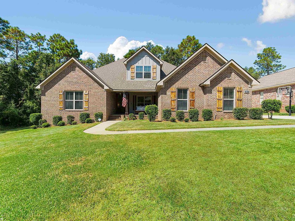 So many thoughtful details with this gorgeous custom build in the desired Garrison Ridge subdivision! Situated on a cul-de-sac, this 5 bedroom, 5 bathroom home will check all of your boxes! The cozy front porch bed swing, hand scraped hardwood floors, double sided fireplace and high end light fixtures are just a few of the touches that make this stunner so special! The main floor features the spacious primary bedroom and ensuite bath with double vanities, dual walk-in closets, makeup area, soaker tub and dual head separate shower. Two other bedrooms, and a flex space that could be used as an additional bedroom or office, along with another full bath and two half baths are also on the main level. The second level features another bedroom with full bath. The home boasts an open concept floor plan, kitchen island with wood trim, painted cabinets, and an oversized laundry room that also serves as a mud drop area with built in shelving. The amazing screened-in porch overlooks the privacy fenced backyard and will become your favorite entertaining spot with its gas fireplace, vented hood for grilling, slate tile flooring , television hookup and stained wood ceiling. Other details include a new tankless hot water heater, irrigation system in both the front and backyards, new garage door unit, new paint and landscaping. Great location! Directly across from Spanish Fort Elementary, and only minutes to shopping, restaurants, boat launches, Historic Blakely State Park and the interstate!