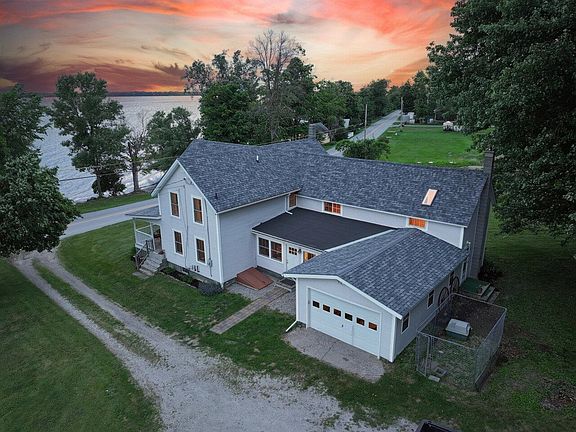 This meticulously renovated 5-bedroom, 3-bath farmhouse offers the ultimate lakefront lifestyle on the shores of Lake Champlain! Nestled on a 3.35-acre lot boasting 100' of privately owned and 300' of deeded shared lake frontage - for unparalleled access just across the street. A nice blend of historic charm with modern updates including softwood and hardwood flooring and updated Marvin windows. Mudroom entry with a large walk-in closet leads to the stunning main kitchen with beautiful hickory cabinets, solid surface counters, double wall ovens, an island with cooktop, and a walk-in pantry. The living room leads to a covered front porch, both with lake views. There's also a formal dining room, first floor bedroom/office, and a full bath with clawfoot tub, shiplap accent wall, and granite topped vanity. The back section features a second kitchen with a farm sink, breakfast nook, and laundry area. There is a wood fire-lit family room with cork flooring with a separate entrance and a second staircase. The flexible floor plan makes it easy to separate living areas for multi-generational living or to capitalize on rental income potential. The second floor offers 4 spacious bedrooms, an office, and another full bath with dual entrances. Enjoy evenings watching the everchanging sunsets from the 4-season sunroom overlooking the lake! Outside, a 1-car garage adds storage space, lush green lawns invite activities, and lakefront access promises endless adventures!