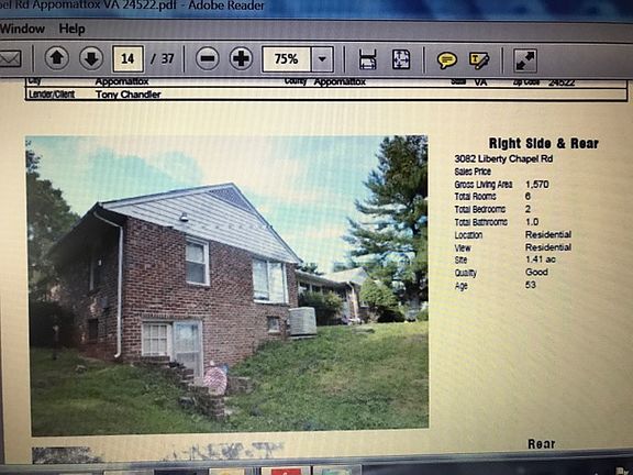 Charming brick ranch nestled on 1.41 acres in Appomattox. Enjoy this summer on the patio with panoramic country & mountain views! Level large front yard w/ circular driveway & rocking chair front porch. Inside features a spacious living room with a cozy gas log fireplace, & vaulted, tongue & groove ceilings adorned with beams. Kitchen boasts new ceramic tile & a full appliance package including a double wall oven, stainless steel fridge, microwave & dishwasher. Generous master bedroom. Upgraded ceramic tile throughout. Central air, heat pump, PLUS exterior wood furnace- significantly reducing your monthly electric bill in the winter. Full unfinished basement for storage galore & expansion potential. Detached 1 car garage plus another workshop. Conveniently located only 13 minutes to Walmart & True Value. 35 minutes to Lynchburg.