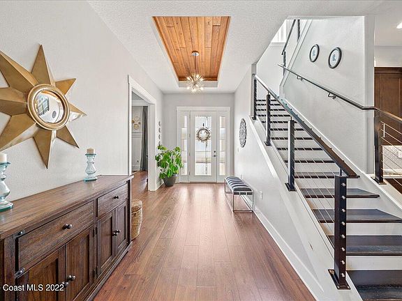 This Amazing Pool Home in sought after Wesley Groves is the Key-Biscayne Sunsmart floor plan that's is solar ready, and has over $239K in upgrades! This smart home features whole house automation and sound system valued at over $20K. As soon as you step through the front door you will fall in love with everything about this home. From the upgraded Mowhawk wood flooring to the custom pine wood trey ceilings, blinds and curtains. There was nothing that these sellers didn't think of! The great room concept with a large dining area makes entertaining a breeze! The kitchen features built-in oven, natural gas cook top, stainless hood, under cabinet lighting, amazing tile backsplash and a beautiful island with sink and breakfast bar. The kitchen features tons of drawers for storage, upgraded upgraded stainless appliances and walk in pantry with custom rain glass. There is a separate coffee/beverage bar area with prep sink and drink fridge that will make your heart happy! 4th bedroom is used as an office and has the most amazing wood work and the downstairs half bath is a cabana bath! The downstairs master suite is its own private oasis! The wood trey ceiling makes this spa like room feel so warm and inviting and has beautiful hanging lights over the nightstands that you will just love! The master bath features a custom stack stone granite wall, double sinks, huge shower with dual shower heads, rain showerhead and custom tile to ceiling. There is a separate garden tub and an oversized walk in custom closet. The French doors lead to the pool for easy access to hot tub when the kids are asleep upstairs! As you walk upstairs you will notice the custom open rail system that cost over $10K! Upstairs features its own family/bonus area for the kids with a private balcony and a separate built in desk area. Both upstairs bedrooms are a great size and feature custom closets. You will love extending your outdoor living huge trussed lanai that features a stack stone custom wall and an outdoor kitchen with the custom granite stack stone, granite top, grill, refrigerator and sink. The natural gas heated saltwater pool and hot tub is perfect for all year fun, and for cool winter nights you can gather around the fireplace with the family! The yard is fenced so even Fido has a place to call home. There is over $30K in additional landscaping and a whole house generator too!! The laundry room is as large as a bedroom and features tons of cabinets and a laundry sink. The garage has a 2ft extension and even an electric car outlet!