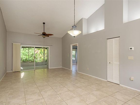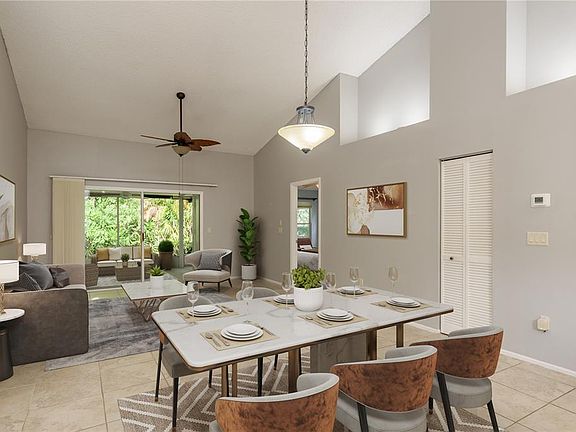 Under contract-accepting backup offers. One or more photo(s) has been virtually staged. This Enchanting Villa community in Palm Harbor now offers your next home! The only unit available in Fox Chase townhomes/Villas right now! This adorable 1 story Villa is situated in the back of the courtyard and features a prime location for access to the community amenities! Featuring soaring vaulted Living and Dining ceilings with architectural half moon sunburst window for optimum natural light! The Kitchen is updated and has an abundance of cabinet space including a large corner lazy Susan rack. The Breakfast Bar is large and can also be used as additional space for gatherings as it can easily be incorporated into the Open Layout. The Living and Dining area overlooks the large Lanai and can be designed with your lifestyle in mind! There is Tile throughout the home. The Primary Bedroom has an En Suite Bathroom which has been updated and features dual Vessel sinks and a large fully tiled Step In shower. The Secondary Bedroom features a lovely accent wall and is close to the Main Bathroom which has also been updated. The large Lanai has plenty of room for your outdoor furniture and has nice Patio Roller Shades on each section to adjust based on your preferences. This End unit corner Villa enjoys a private back yard and is situated on a large side yard that is a short walk to the Pool, Courts, etc. The HOA fee covers Water / Trash / Cable / Internet / exterior paint / grounds maintenance / recreational facilities. This is a great opportunity to own in Palm Harbor at an affordable price! Schedule your appointment soon!