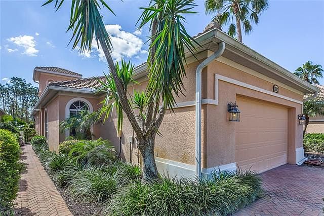 Light & bright villa home overlooking the 5th green of Olde Cypress. Tile flooring in living area, separate built-in bar w/ shelving, volume tray ceilings. Spacious eat in kitchen with plenty of cabinetry, inviting formal dining room for entertaining your guests. Large master suite with his/her closets, soaking tub, walk-in shower separate vanities. Enjoy the outdoor oasis w/ the heated pool & spa controlled by Aqua link system, pool offers a ceramic tile around edge to give it a more detailed look.