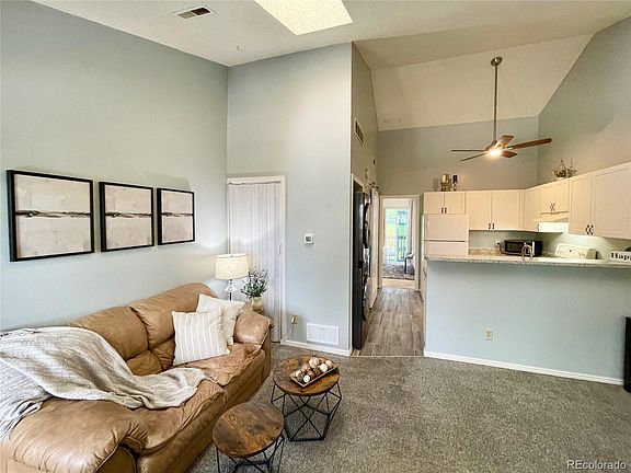 Welcome to this beautiful condominium located in the highly sought-after Autumn Chase Community in Westminster. This exceptional penthouse unit has undergone a beautiful update and features 1 bedroom and 1 bathroom, in a stylish and modern living space. As you step inside, you'll be captivated by the open layout, enhanced by vaulted ceilings, skylights, and beautiful finishes. The kitchen has been beautifully remodeled with shaker cabinetry, providing a sleek and contemporary aesthetic. The neutral color palette throughout the condo serves as a blank canvas, allowing you to personalize the space to your own taste. The spacious bedroom boasts ample storage, a private balcony, and provides a serene sanctuary for restful nights. The updated and generously sized bathroom complements the overall elegance of the home. This property has been meticulously cared for, with attention to detail evident throughout. You will find a newer electrical panel, water heater, and double-paned windows. You will appreciate the convenience of in-unit laundry, extra storage, and a designated parking space. The Autumn Chase Community offers a clubhouse, community pool, and includes trash and water services within the monthly HOA fee. Located just minutes away from shopping, dining, and with easy access to downtown Denver, this condominium presents an ideal opportunity for those seeking both comfort and convenience. Don't miss out on this incredible chance to make this lovely home your own. Schedule your showing today before it's gone.