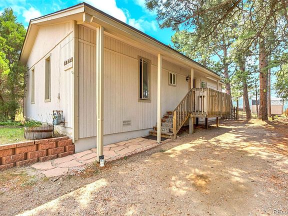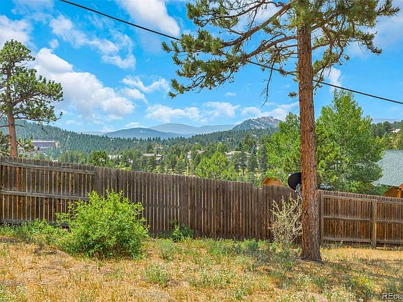 3 bedroom single family in North Evergreen for under 500K! Easy to maintain Ranch Style home with a new roof. Giant fenced & partially landscaped backyard awaits your imagination. Great room includes living room and kitchen with a vaulted ceiling and a native stone fireplace hearth. Double pane windows, wood stove insert, and central natural gas forced air heat keep the home bright and cozy. Long range mountain views to the south. Sunny Southern exposure provides the perfect opportunity to add solar panels. The sun is also currently buffered by pine trees that provide shade and attract wildlife. Easy driveway with lots of parking is adjacent to a county-maintained road. Two 8' x 8' storage sheds for all the gear. Short stroll to a playground, ballfield, restaurants and services. The North Evergreen location is convenient to shopping, schools, and commuting routes. Hike / Bike nearby in 1,000+ acres of Open Space @ Elk Meadow Park. No HOA covenants allow for full enjoyment of your property. Yes, it is definitely cooler 2.280 feet above the Mile High City so Move up to EVERGREEN and start enjoying the Colorado sunshine, fresh air, wildlife, and abundant trees.