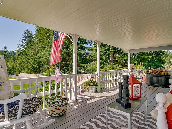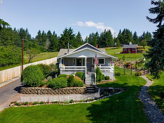 Charming farmhouse with covered porch, new engineered hardwood floors, updated kitchen with slate and quartz, woodstove, living room built-ins, and 3 bedrooms. Five sunny acres, two outbuildings, and a large tiled garage with sink and cabinetry. Fenced gardens protect cherry, apple, and pear trees, marionberries, strawberries, and blueberries. Sit on the covered porch and listen to the sounds of the nearby Little Washougal River. Camas Schools and 10 minutes to downtown Camas.