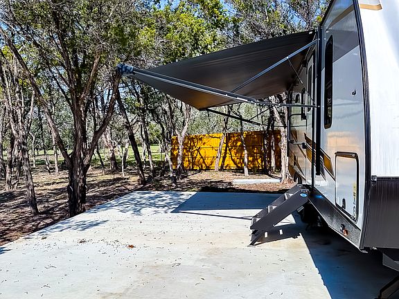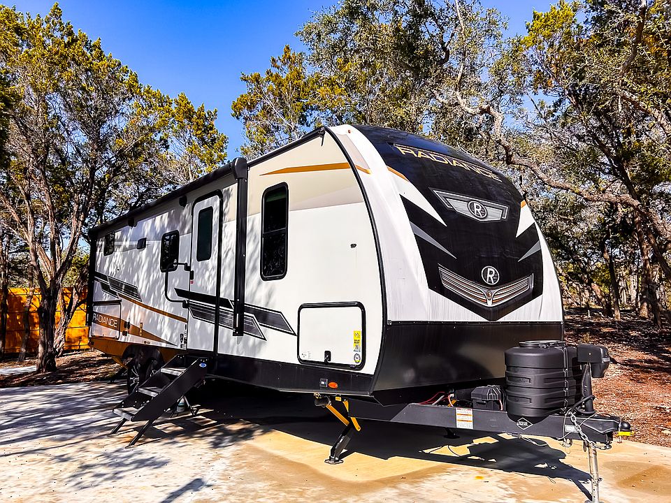 This 2023 Radiance RV is located on 3 beautiful acres in Bulverde, TX. The 30 ft RV sleeps 8 and includes a king bed, bunk bed, and 1 bathroom. It features a double-door refrigerator, 3-burner cooktop, and an outdoor kitchen. The RV is connected to utilities. Requirements: - Application & background check - Income must be 3X the amount of rent - 2 months proof of income - Copy of driver license/ID