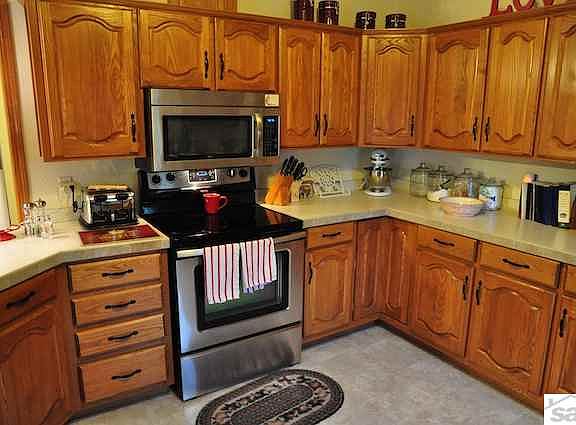 3 bedrooms, 2 full bathrooms, maintenance free siding, and views of gently rolling fields, the Penokee hills, and memorable sunsets. Enclosed porch entryway. Spacious/open living room and kitchen areas. Oak cabinets, and oak trim throughout. 28x32 garage. Great yard space with several apple and cherry trees to enjoy. 20 very pretty acres of land. About 6 acres is wooded with a nice mix of mature hardwoods and pines. Great place to enjoy country living in the Ashland area!
