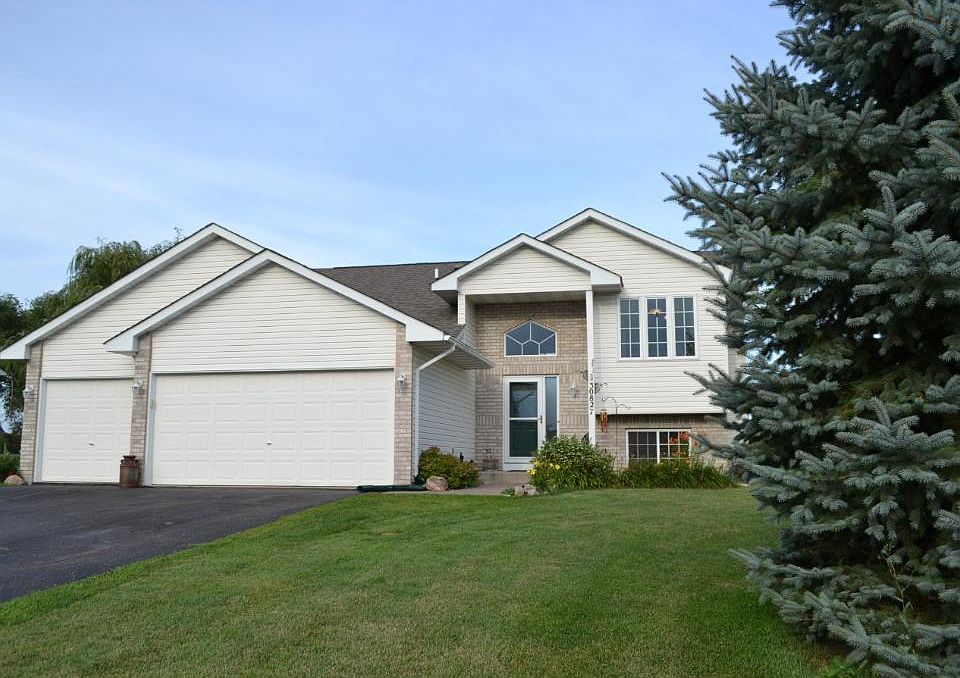 HERE IT IS!! 4 bdrm, 2 bth, 3 car HEATED garage! Huge lot - backs up to wildlife sanctuary for gorgeous views! Lovingly cared for, & beautifully updated. Brand new roof, new deck, newly finished lower level done in tongue & groove for a warm, cozy feel!! 6 panel doors, LG room sizes, granite in LL bthrm (flrs & counter). Mstr bdrm is currently used as kids' room- has walk thru bath. Walk in closets, beautifully landscaped & ready for you to call HOME! Home Warranty included!, Directions Hwy 8 E to Co 21 (Redwing Ave) N to 308th - Left (road turns into Regal) follow to property on right.