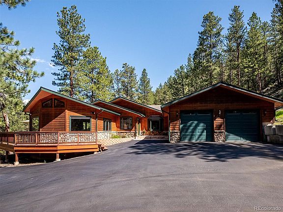 Buyer terminated due to health reasons. This 1980’s home was re-designed in 2007-2008. The overall price per sq. ft. does not reflect the large 1680 sq. ft. workshop with 4 extra garages, built in 2013. Nestled within six park-like acres of meadow and towering pines this property also offers a creek that provides soothing sounds to this already serene setting. As you step inside, you’ll immediately feel the pride of ownership from every corner of this immaculately maintained home. The great room is the heart of the home, with vaulted ceilings and windows that offer views of the surrounding meadow and wildlife. A river rock fireplace creates a cozy sitting area between the great room and dining area, positioned to ensure that nothing obstructs your outdoor views. Impressive just begins to describe the chef’s kitchen with Viking appliances, maple cabinets, granite countertops, island and adjacent wet bar. The primary suite offers a 5pc bathroom with his and her sinks, a large soak tub, tiled shower and walk-in closet. 2 ensuite bedrooms, large exercise room, spacious office, laundry room and storage complete this rare main level living. *There is potential for a total of 5 bedrooms if you convert the office and exercise room. When it comes time to entertain, the redwood deck provides ample space for hosting gatherings both large and small. Attached is an oversized 2 car heated garage large enough for a 1- ton truck. The land is usable and allows space for your mountain toys or other equipment with so many other possibilities. Zoned A-1 offers a variety of uses, including an option to build an auxiliary unit for a mother-in-law apartment or rental. Another attribute is the home comes fully equipped with a whole house back-up Generac generator. Conveniently located to stores, DIA and world class skiing. Better than the photos this is a property that must be experienced in person. *The septic is a 3 bedroom/6 person septic.