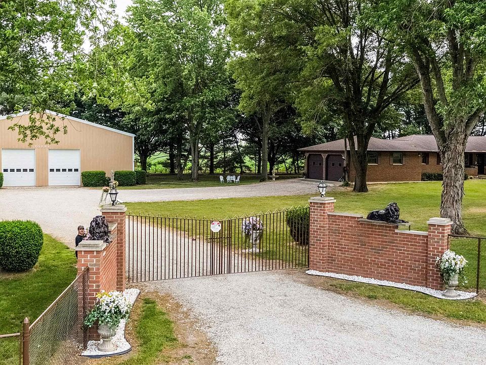PRICE REDUCED! One-of-a-kind gated country estate property featuring an all brick 3 Bedroom, 2 Bath custom home with 2 car attached garage plus 4000 sq ft climate controlled building with 4 overhead doors, 1280 sq ft loft storage and 3-220V outlets. Home has new flooring and paint throughout, bay windows and porches front and back, elegant Austrian chandeliers, hot tub, and ultra efficient heat pump. Garage and building have all new overhead doors.