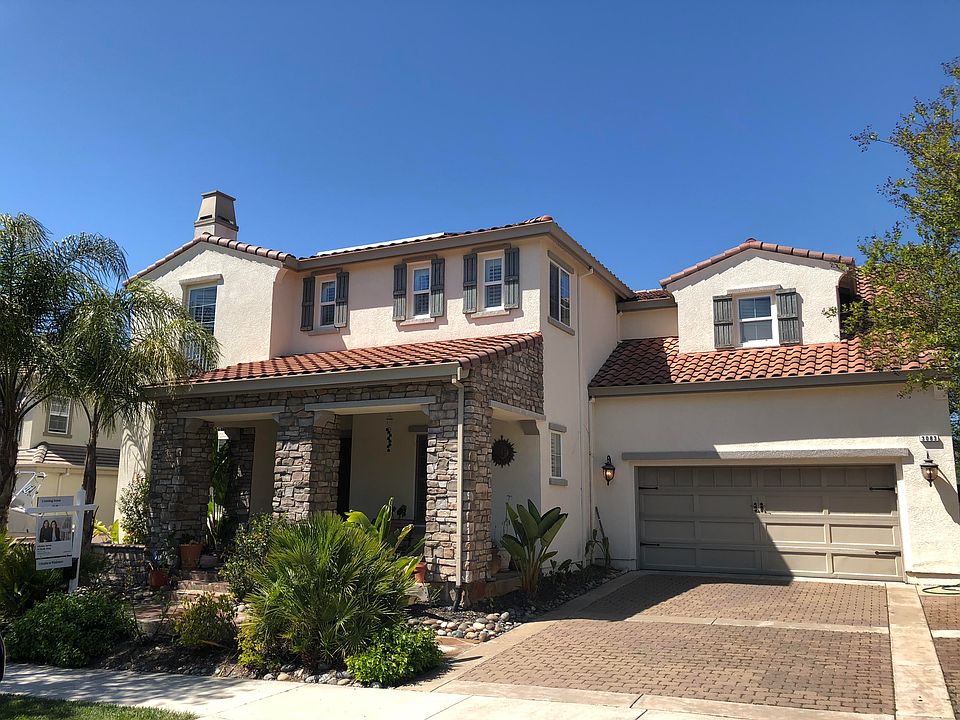 Fabulous home with many gorgeous upgrades throughout. This flexible flooroplan offers many amenities including stone flooring on the main level, hardwood flooring on the second level, plantation shutters, crown moulding and a desirable downstairs bedroom and full bathroom. A chef's dream kitchen offers granite countertops with full backsplash, center island, stainless steel appliances and a spacious pantry/closet. An expansive bonus room makes for the perfect home office or media room. Relax in the sun filled backyard lined with a custom stone seat wall, water fountain, spacious side yard and fruit trees. Solar panels provide power savings. The wonderful Windemere community offers top rated schools and beautifully landscaped parks.
