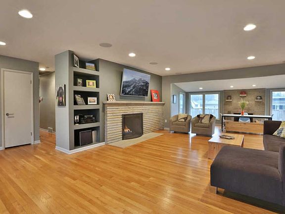 Stunning Mid-Century Modern home! Lovingly restored and expanded, this house has been well-cared for from top to bottom by its current owners. A Derrick Layer contemporary owners' suite addition with dramatic architectural lines flows easily off the original bedroom wing. Attention has been paid to every detail of both the addition and the original house. The open floor plan is highlighted by the entirely new kitchen w/quartz and granite counter tops, SS appliances and is open to the large great room with 2 fireplaces. Also new since 2012: baths, roof, hvac, windows, elec service, water tank, radon mitigation, concrete drive, walks and patio, fenced rear yard, and much more. Oversized laundry/mudroom, hardwood floors throughout. Quiet location close to schools, shopping and parks.