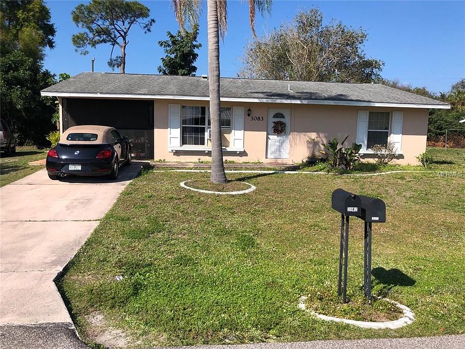 2 bedroom, 2 bathrooms in the heart of the New York section in Port Charlotte. Open and split floor plan, with large family room, and inside laundry. Both bathrooms have been recently renovated, and the carport has been screened in. Short drive to Gulf beaches, shopping, dining, entertainment, Charlotte Sports Park. Great year round home in a peaceful residential area.
