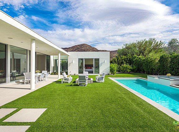 Step into the seclusion of this stunning high-design private estate. Located in South Palm Springs behind the gates of Linea and set amongst a dramatic mountain backdrop, architect Anthony Poon has balanced the industrial with the creative in a way that showcases both sleek style and organic form. Open floor plan, floor to ceiling glass, and indoor-outdoor connections open to sweeping southwest views. Gourmet kitchen. Master wing pavilion features spa-like bathroom and a "walls of glass" entrance that leads to a master bedroom with spectacular mountain views. Spacious private outdoor living area accommodates large pool, spa, fire pit and outdoor kitchen. Owned solar panel system. Fee Land. Once you arrive...you won't want to leave.