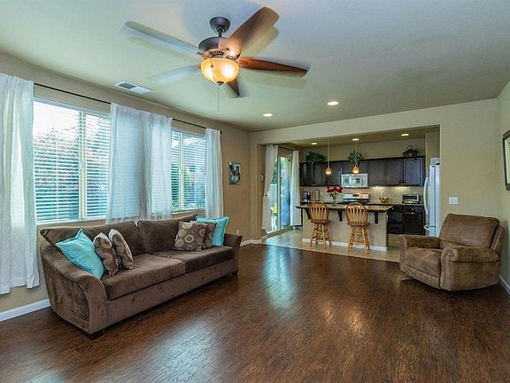 This beautiful McCaffrey built home is located in a neighborhood with large grassy play areas and a playground. It's also walking distance to Reagan Elementary, Reyburn Intermediate, and Clovis East High school. As you enter the home, you walk through to the open concept living room/kitchen. The kitchen features granite countertops, a convection oven microwave, and a pantry for extra storage. Laminate Flooring throughout the downstairs and upstairs and carpet in all bedrooms. The front yard is drought tolerant set up with drip system and the backyard has wide concrete slabs on both sides of home and a cared for lawn in back. Newly installed covered patio with a fan also in backyard exiting from the kitchen. The house is available to rent from May 1st, 2021. Contact us for a showing.