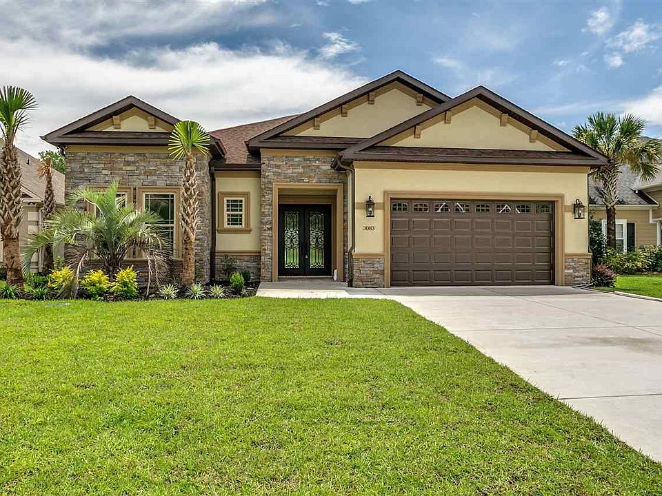 Ranch House on a lakefront lot offers 4 bedrooms, 3 bathrooms. Great Room open to Kitchen and Dining. Large Master BR with Trey ceiling. His and Her walk-in closets. Master Bath offers dual vanities, garden tub and large shower. Coffered Ceiling in Great Room. Trey Ceilings in all Guest Bedrooms. Large covered Lanai with Summer Kitchen. Rinnai Instant Water Heater. Stucco Exterior.