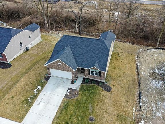 Beautiful Ashford Ranch style Danville model with lots of upgrades on private tree lined .321 acre lot with creek view and walk out lower level, located in Franklin Twp with Springboro schools. Features: all brick front, wide lots for space between neighbors, vaulted ceilings in entry and great room that has a gas fireplace and lots of windows for natural light, upgraded kitchen with expresso cabinets-backsplash-pantry size was doubled-composite sink-granite counters and large island with granite-SS appliances, large master bedroom overlooking tree line with walk in closet, master bath is very nice with upgraded tub and tile all the way to the ceiling, Luxury vinyl flooring with wood look in entry-hall-kitchen and sun room, lots of windows, walk out LL has a framed out and drywalled rec room and plumbed for a full bath, walk out the French doors in the LL to a private 21 x 18 patio, high efficiency furnace, 200 amp elec. Why build when you can move right in this upgraded beauty.
