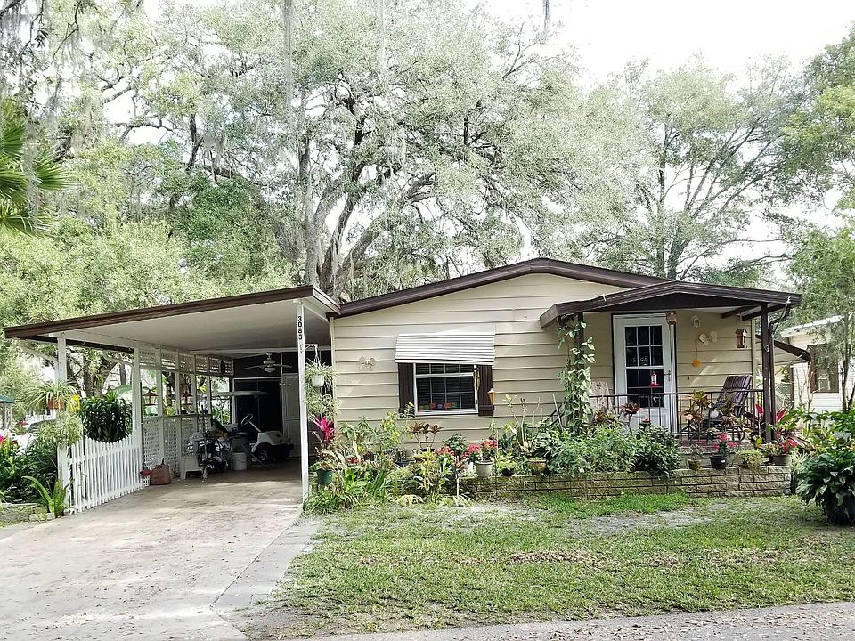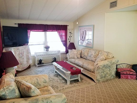 Gorgeous and lush plant lovers paradise! This large double wide sits on a corner lot surrounded by different and seasonal plants. Inside is a very large floor plan with 2 bedrooms, 2 baths and so much living space you won't believe you are in a mobile home. The sunroom has been fully finished with vinyl windows, tile flooring and French doors leading into the home. Ceramic tile continues into the den area and kitchen. The shed has also been finished with tile flooring, so it basically feels like an inside laundry area. Both bedrooms are spacious, and the master bath has a large dressing area. Seller is negotiable on any or all furnishings. All appliances remain. Newer windows throughout the home and solid floors make this home a rare find! It has all been done for you. Move in, add your style and you will have a wonderful home for years to come. This one is a must see! Located in the age qualified community of Clover Leaf Farms. All lot rents should be confirmed with community office due to variables in lease dates. Gorgeous and lush plant lovers paradise! This large double wide sits on a corner lot surrounded by different and seasonal plants. Inside is a very large floor plan with 2 bedrooms, 2 baths and so much living space you won't believe you are in a mobile home. The sunroom has been fully finished with vinyl windows, tile flooring and French doors leading into the home. Ceramic tile continues into the den area and kitchen. The shed has also been finished with tile flooring, so it basically feels like an inside laundry area. Both bedrooms are spacious, and the master bath has a large dressing area. Seller is negotiable on any or all furnishings. All appliances remain. Newer windows throughout the home and solid floors make this home a rare find! It has all been done for you. Move in, add your style and you will have a wonderful home for years to come. This one is a must see! Located in the age qualified community of Clover Leaf Farms.