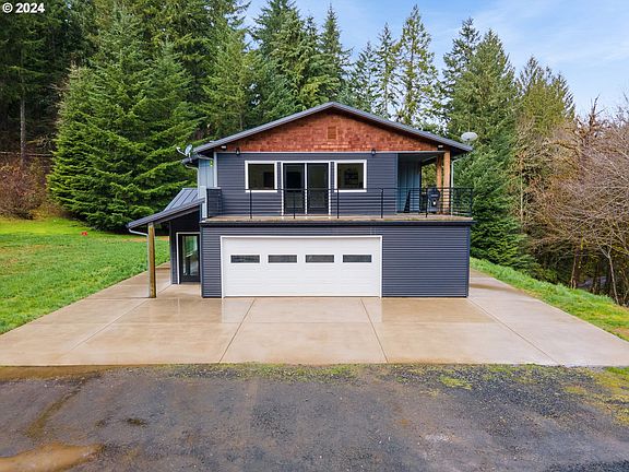 Welcome to your private sanctuary! Secluded away from all the noise, surrounded by nature, while being only minutes from I-5 access and downtown Cottage Grove, this meticulously designed 4 bed, 2.5 bath retreat is nestled on 2.2 acres of serene living. This thoughtfully crafted home boasts an inviting open concept floor plan with tons of high end features throughout. Spacious living room with towering 17 foot ceilings that is anchored by a comforting wood stove for added ambiance. Oversized windows with abundant natural lighting throughout. The gourmet kitchen is a chef's delight, featuring top-of-the-line appliances, quartz countertops and generous counter space. Functionality meets luxury with dual laundry facilities on both levels. Upstairs, three bedrooms offer comfortable and private accommodations for family or guests. A spacious loft / family room that is built for entertaining with a built-in bar and access onto the roof top patio, creating an ideal setting for outdoor gatherings or quiet relaxation.The primary bedroom on the main floor, with ensuite full bath featuring a large walk-in shower and soaking tub. Oversized walk-in closet and private exterior access! The oversized garage stands ready to accommodate all of your needs, with ample space for storage, vehicles and hobbies. This garage is a practical and impressive addition to this one of a kind home! Shown by appointment only. No drive by's. Call your broker today to arrange a private tour!