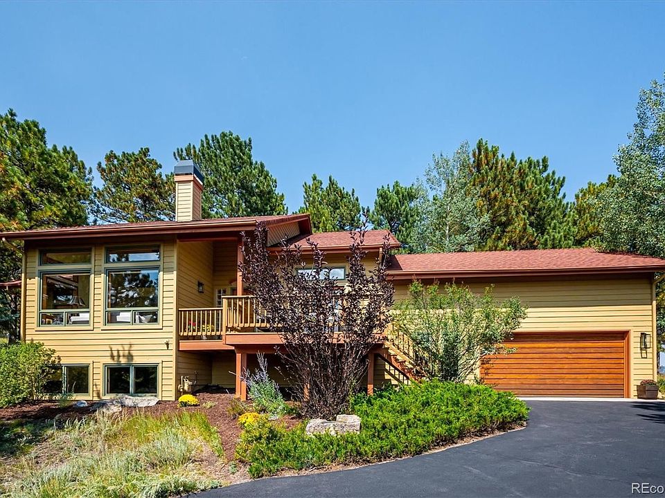 Nestled on a private, beautiful lot w/ stunning rock formations. Nearly 1 acre in the highly desired Hiwan Golf Club community, with spectacular MOUNTAIN VIEWS. Lives like a RANCH PLAN w/ a Main Floor Primary Bedroom & Main Floor Laundry/Mud Room. Tree house like feel in the Main Floor Bedroom with lots of windows & its own private outdoor deck. Impeccably maintained with a new outdoor deck, newer roof, fresh landscaping & flowers, new exterior paint, newly sealed driveway, & updated bathroom fixtures, flooring, & lighting. Beautiful kitchen w/ solid Italian soapstone counters, a Viking Oven/Microwave/Warming Drawer, a wine fridge, a Wolf Gas Cooktop, & a Bosch dishwasher. Coveted southern exposure w/ passive solar that helps heat the house in the winter & offers natural light throughout the day. Incredible main deck w/ views of Evergreen Mountain & beyond. Upstairs you will find 2 oversized bedrooms connected by a Jack & Jill Bathroom & an upstairs loft area for an office. High ceilings in the unfinished, garden level, basement w/ lots of light. Basement would be easy to finish as it is pre-plumbed for 4th bedroom & bathroom. Whole house water filtration system & a 95% High Efficiency Combo Boiler for the baseboard hot water heat & domestic hot water. 2 car Garage w/ 13' high ceilings that would accommodate a lift system for more cars or toys. Low HOA fees. Join the Hiwan Golf Club & Enjoy dining, social events, the pool, tennis & pickleball courts, & fitness classes. Junior activities including golf, tennis, pickleball, & swimming lessons. Close to restaurants, the Art Center, Recreation Center, Evergreen Lake, & top rated schools. Walk to Elk Meadow Open Space. Seasonal activities directly out your door including hiking, biking, snowshoeing & cross-country skiing on the Evergreen trails! Just minutes to I-70 to head west to ski or east to Denver! This Hiwan gem personifies Colorado foothills living at its finest!