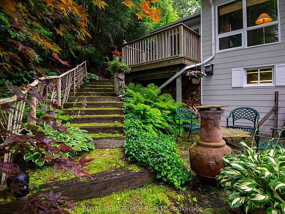 Welcome to this warm and welcoming Viceroy-style home set on a spacious 1.87-acre lot in beautiful Mono. If you've been dreaming of a quieter lifestyle surrounded by nature, this property is your chance to make that dream a reality. The eat-in kitchen offers a breakfast bar and walk-out to the back deck - perfect for morning coffee or casual meals. There's also a separate dining room with its own walk-out, ideal for hosting family dinners or special occasions. The great room is filled with natural light thanks to its large windows and vaulted ceiling, offering views of the peaceful backyard. For more laid-back hangouts, there's a separate family room that also walks out to the deck. A convenient 2 piece bathroom is located nearby for guests. This home features 3 bedrooms and 3 bathrooms, including a main level primary bedroom with a walk-in closet, updated 4 piece ensuite, and its own walk-out to the deck. Upstairs, bedrooms two and three each have their own vaulted ceilings, giving them an open and airy feel. You'll also appreciate the updated main floor laundry and the insulated 2 car garage, which adds extra storage and keeps your vehicles out of the weather. Surrounded by mature trees, the property feels private and serene. A quiet pond with a soothing water feature adds to the sense of calm, and an invisible fence keeps your pets safe while they explore. When its time to unwind, head out to the outdoor sauna and soak in the peaceful setting.