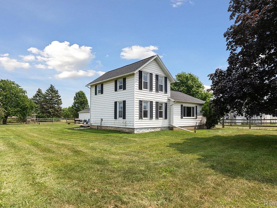 Welcome to 3084 Dennison Rd in Dundee! This awesome 3 bed, 1 full and 1 half bath two-story farmhouse rests on nearly two acres and features an open floor plan. The large living room greets you as you come in and is complete with hardwood flooring, arched doorways and tons of natural light and character. The updated kitchen and dining area have vinyl plank flooring and the kitchen includes tons of cabinet space for storage and granite counters. The primary bedroom and a full bathroom are also located on the main floor and off of the kitchen area there is a spacious three seasons room where you can enjoy the beauty of nature that surrounds you at this private oasis. The partially finished basement has more storage space and a bonus area, great for an office or entertaining. The home has an attached 2.5 car garage and also included with the property is a large barn. Updates include new Well Head and Well Expansion Tank (23), Water Heater (21), Furnace and Heat Pump (21), RO System and Water Softener (18). Schedule your showing today!