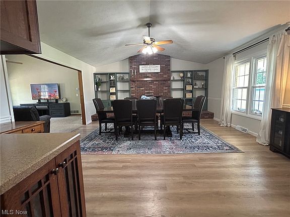 Entertain with ease inside and out with this stunning 2300 sq ft on main level 4 bedroom, 3 full nicely-tiled bath ranch with handy walkout basement on 1.5 acres. The beautifully updated kitchen has lots of custom Amish cabinetry and counter space offering stainless steel appliances. Very open floor plan, fresh neutral decor, two separate master bedrooms w/own full baths on opposite sides of the home for added privacy. Vaulted ceilings in all the right places. More features include a full-brick wood burning fireplace sided with built-in shelves, sky light, bay window, walk-in closets and nice foyer entry. The new quality vinyl-plank flooring flows through foyer, hallway, kitchen and dining room makes cleaning easy. Most windows replaced in 2022. Two car attached garage has a brand new garage door and concrete floor enters mudroom. Basement includes great storage, workshop (shelving cabinets bench) 5th bedroom option, pet shower station, concreted crawlspace, glass block windows, 200 amp elec box, 2 furnaces, and 2 central air units for efficient home comfort. Two separate sitting areas on wrap around deck from master to family room. Lots of extra parking, easy-care landscaping, wooded back view located across from Trophy Club allotment has close access to 71 and turnpike. A calming creek with walk-over bridge near property edge; large shed w/electric at the rear. An exceptionally clean home; unpack and simply enjoy life in this unique home.