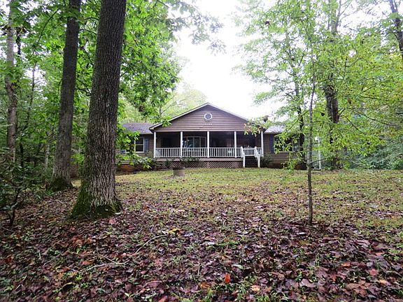 Ranch home nestled in the woods. Very open floor plan. Great room with brick hearth for possible gas stove or wood. Cathedral ceiling/hardwood flooring. Updated kitchen. Oversized master suite with large walk in closet. Utility on main. Double carport. 1 car garage oversized with workshop. Large front porch. Small part of creek borders property. Easement through driveway for adjoining property. Sq. ft. lot size est.