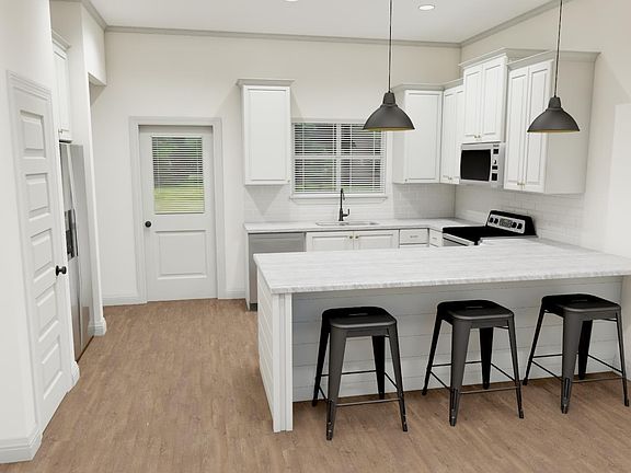 Another gorgeous home built by Sidar Builders! The home boasts an open kitchen with custom cabinets, granite countertops, stainless appliances, faux wood blinds, and pendant lighting. Open living/family room, abundant natural light, vinyl wood plank flooring, and oversized covered patio. Primary suite with crown molding and large windows that provide ample natural light. Primary bath with large shower with glass shower door, granite vanity, and large walk-in closet with built-in shelves. Three other bedrooms with ample closet space and built-in storage share a 2nd full bath with granite vanity and tub/shower combo. Home features a sprinkler system, privacy fence, and vinyl Low-E windows.