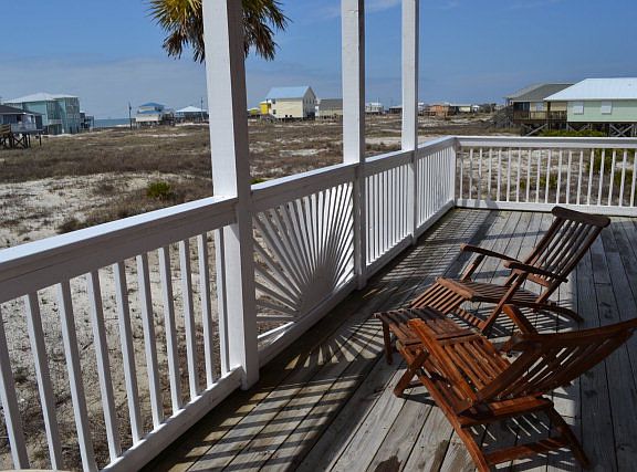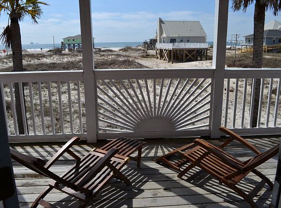 UNBELIEVABLE Beach House! Hear the surf, see the waves from decks on two levels. Views of the GULF and the BAY! Perfect floor plan for families. Updated with granite/stainless, pretty tile and is super clean! Nicest home at this price. Near beach access and marina! Large deck on main level and upper deck off bedroom. One bedroom has views of the bays. Main level master, large space, large master/master bath/closet; half bath and laundry room;upstairs 3 bedrooms and a bath. Come relax!