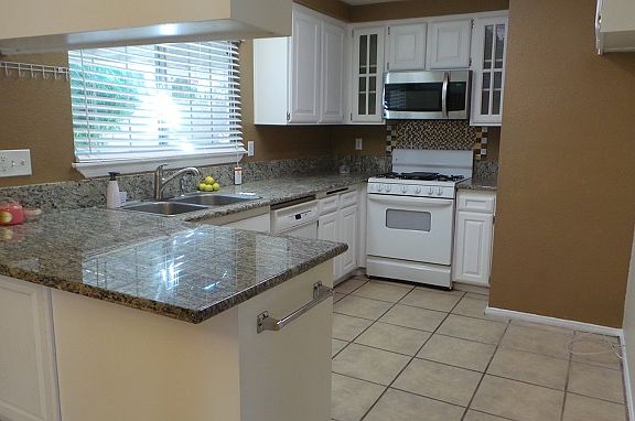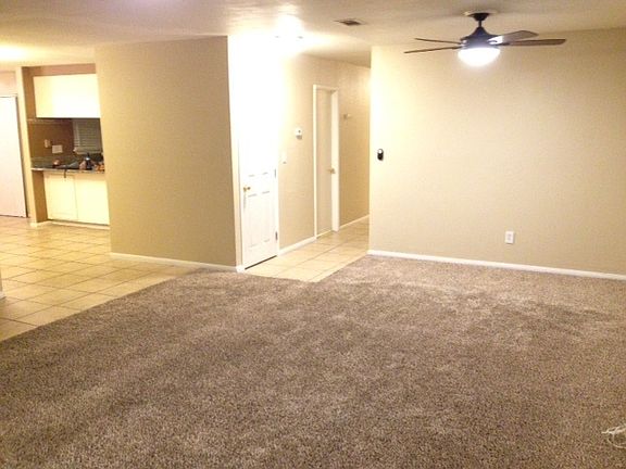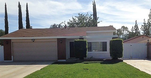 Beautiful home in good location in the middle of tract. Spacious living room with cozy brick fireplace, separate dining room, Upgraded kitchen with granite counter tops with lots of cabinets and storage, tiled floors in dining room, kitchen and entry area. Master bedroom with its own private bathroom. It has two driveways one leads to 2 car garage with auto door opener, and the other can be used for your RV or more parking area!!. Two New wrought iron gates have been installed. Don't miss this opportunity!